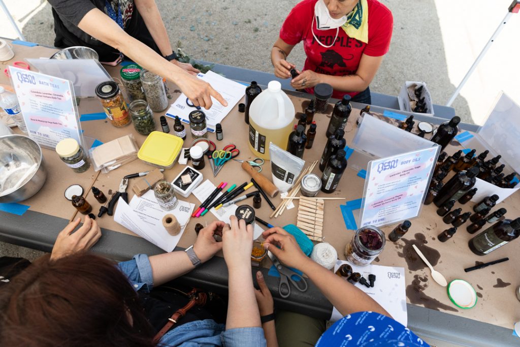 Queer Spa Network invited participants to make body oils, bath teas, and eucalyptus hangers—to take home and for mutual aid.